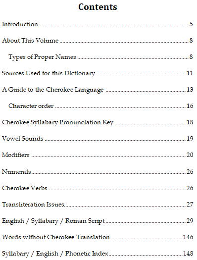 This dictionary contains over 1,300 English terms with their Cherokee translation and transliteration. It also includes a Cherokee / English index.