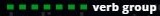 • verb group - a group containing at least one verb (the head), and often other words such as auxiliaries and modal verbs. For example, 'could be', 'shouted', 'must go', and 'have been robbed' are all verb groups.